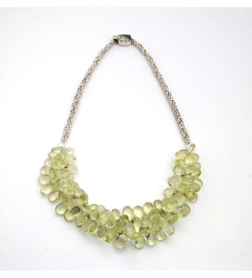 Lemon quartz and handmade silver chainmaille with a silver box clasp. $350.00